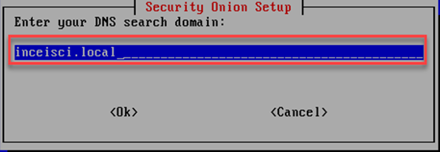 Security Onion kurulum ekranında DNS domain bilgileri gösterildiği gibi yazılarak kuruluma devam edilir.