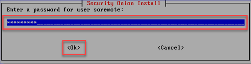 Security Onion kurulum ekranında sensör ekleyebilmek için soremote kullanıcısının şifresi oluşturulması gerekmektedir.