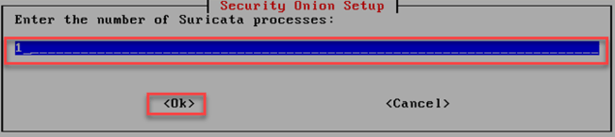 Security Onion kurulum ekranında Suricata’nın kullanacağı işlemci sayısı ayarlanarak kuruluma devam edilir. Burada işlemci sayısı 16/32 core ise 4 core verilmelidir.