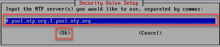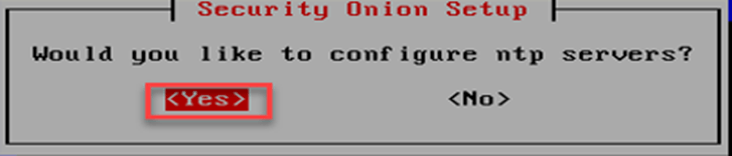 Security Onion kurulum ekranında zaman sunucusu ayarlanarak kuruluma devam edilir. NTP ayarları doğru girilmelidir yoksa loglarda saat farkı olmaktadır.