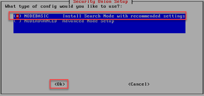 Security Onion kurulum ekranında arama düğümü yapılandırması “NODEBASIC” olarak seçilir kuruluma devam edilir.