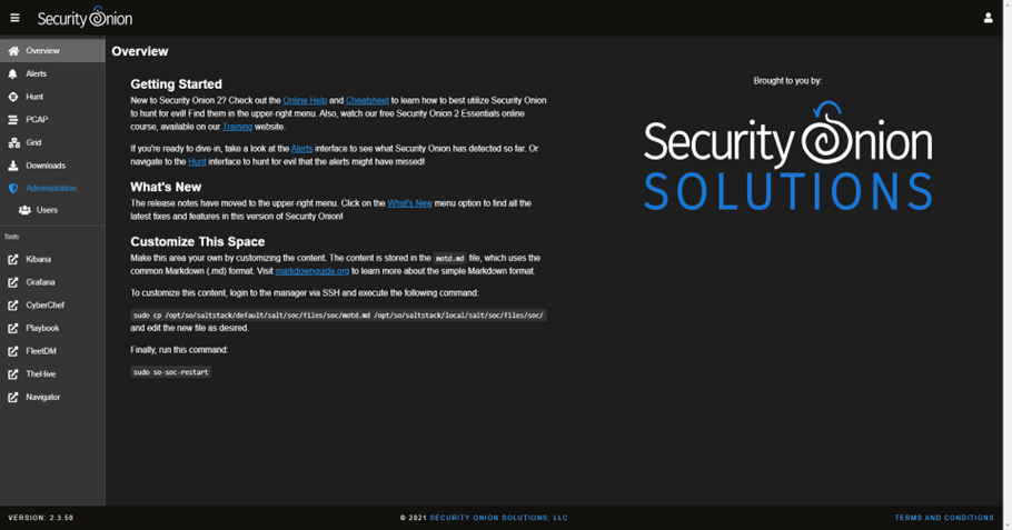 Security Onion arayüzüne ip adresinden erişim sağlanır. Tarayıcı olarak chrome kullanılması tavsiye edilmektedir.