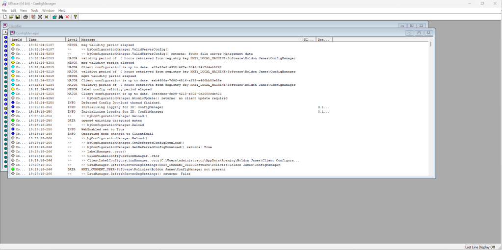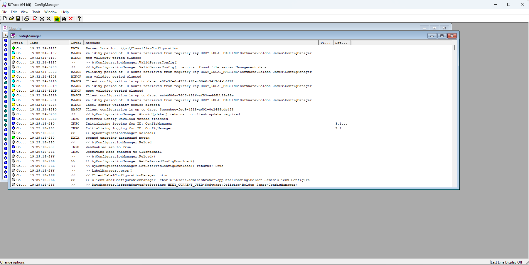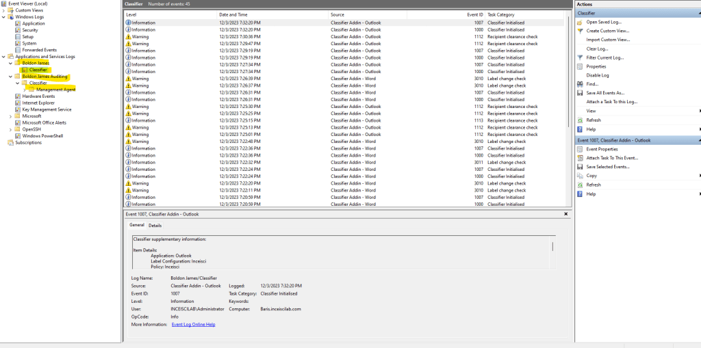 Event Viewer> Applications and Services Logs altında Boldon James Dizininde Classifier Loglarını Boldon James Auditing Dizininde ise Management Agent loglarına erişebilirsiniz.
